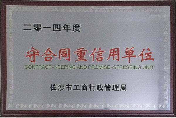 長(zhǎng)沙市"重合同守信用"單位稱(chēng)號(hào)