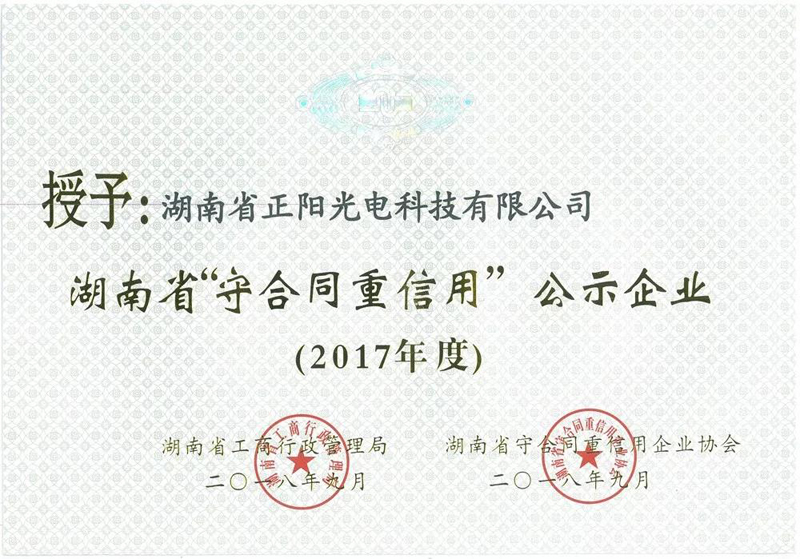 熱烈祝賀湖南正陽榮獲湖南省“守合同重信用”公示企業(yè)單位稱號![2018-10-11]