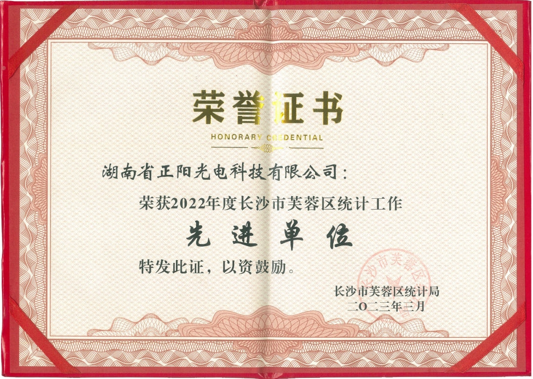 為進一步做好統(tǒng)計工作,積極調(diào)動轄區(qū)企事業(yè)單位統(tǒng)計工作積極性,提升統(tǒng)計數(shù)據(jù)質(zhì)量,長沙市芙蓉區(qū)統(tǒng)計局表彰了一批2022年度統(tǒng)計工作先進單位及個人。湖南省正陽光電科技...