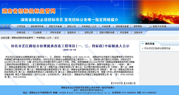 2016年12月19日,湖南省正陽(yáng)光電科技有限公司成功中標(biāo)懷化市芷江路綜合治理體質(zhì)改造工程項(xiàng)目(四標(biāo)段)。