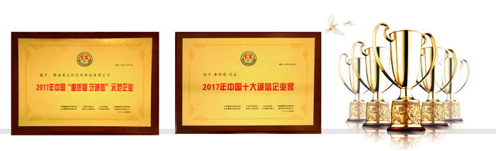 誠信,讓企業(yè)更受尊重,讓中國更受尊重。湖南省正陽光電科技有限公司及其董事長廖偉雄先生在推進我國商業(yè)誠信和社會誠信建設中做出特殊貢獻和示范意義,經有關部門推薦審核,湖南省正陽光電科技有限公司被評為“重質量、守誠信”示范企業(yè),董事長廖偉雄榮獲“中國十大誠信企業(yè)家”稱號。